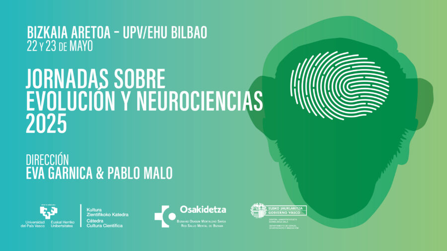 Las Jornadas sobre Evolución y neurociencias están organizadas por la Cátedra de Cultura Científica de la UPV/EHU y la Red de Salud Mental de Bizkaia (RSMB), con el apoyo del Departamento de Ciencia, Universidades e Innovación del Gobierno Vasco.