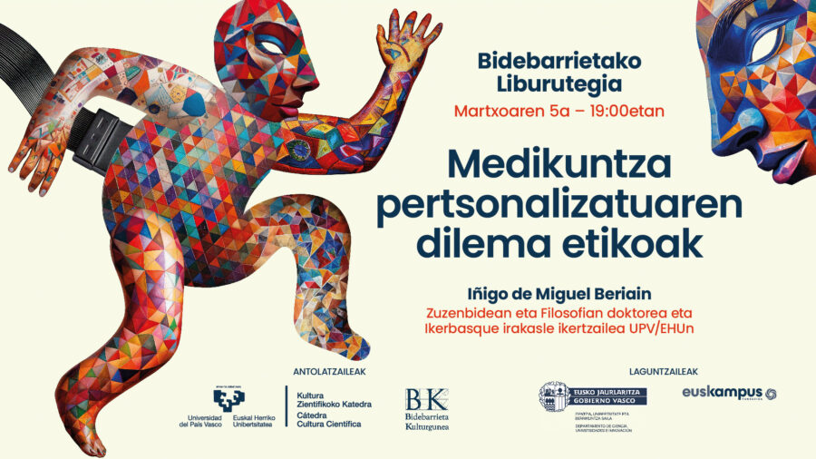 Medikuntza pertsonalizatuaren dilema etikoen inguruko hitzaldi-solasaldia UPV/EHUko Kultura Zientifikoko Katedrak eta Bidebarrieta Liburutegiak antolatzen duten Bidebarrieta Zientifikoa zikloaren saioa da. Hitzaldia aurrez aurre, eta streaming bidez ere ikusi ahalko da KulturguneaTB Kanalean. Aretoko sarrera doakoa eta librea izango da lekuak bete arte.