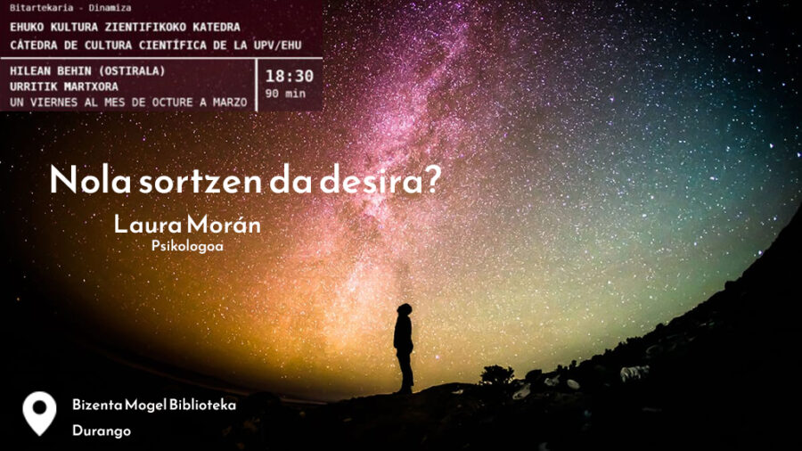 Hitzaldia martxoaren 7an izango da, arratsaldeko 18:30ean Duragok Bizenta Mogel Bibliotekan, EHUko Kultura Zientifikoko Katedrak eta Bizenta Mogel Bibliotekak antolatzen duten Zientzia Ertzetik dibulgazioko hitzaldi-sortaren barruan.Sarrera librea izango da lekuak bete arte eta streamingez jarraitzeko aukera ere egongo da EITBren Kosmos kanalaren bitartez.